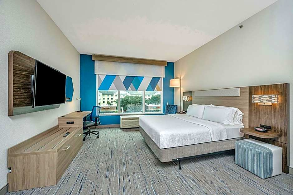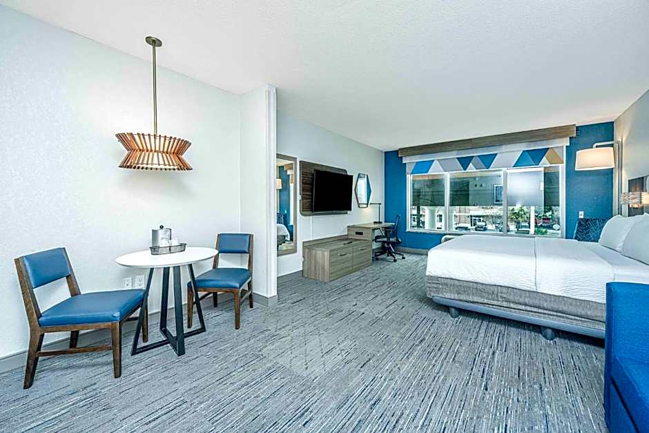 This King room has a flat-screen TV, air conditioning and refrigerator.